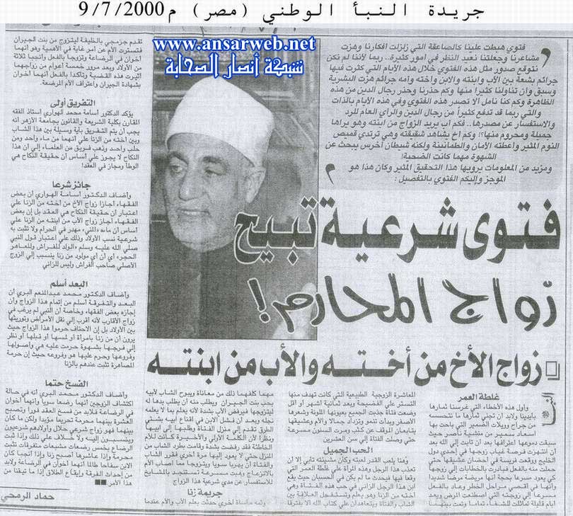 » زواج الأخ من أخته Ùˆ الأب من ابنته ØÙ„ال عند النواصب !!!